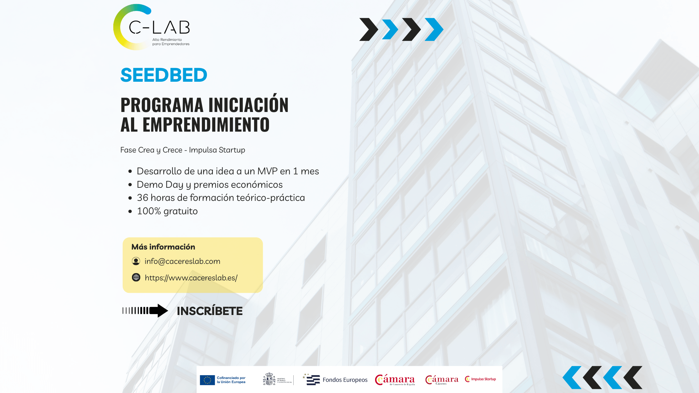 Desde C-LAB, el Centro de Alto Rendimiento para Emprendedores de la Cámara Oficial de Comercio de la provincia de Cáceres, hemos abierto la convocatoria de Seedbed, nuestro programa formativo intensivo diseñado para acompañarte desde la inspiración hasta la acción. 🚀